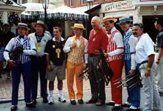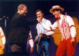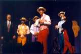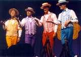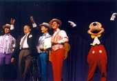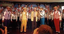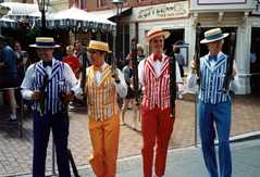 | Over the years, the Dapper Dans have developed a great relationship with SPEBSQSA (Society for the Preservation and Encouragement of Barber Shop Quartet Singing in America). Thousands of barbershoppers from around the world seek out the Dapper Dans in order to share their love of barbershop harmony, sing a song with them and earn an Honorary Dapper Dan membership card . Through the years the Dapper Dans have been a featured quartet on numerous shows sponsored by local chapters of the "Society." In recognition of their promoting barbershop harmony for over 40 years, the Society honored all past and present Dapper Dans with an Honorary Main Street, U.S.A. Chapter of Disneyland during their International Convention in Anaheim, CA. In addition, Mickey Mouse was officially named "First Mouse of Harmony" on the contest stage at the convention. You can see more articles on this in the Dapper Dans Scrapbook. |